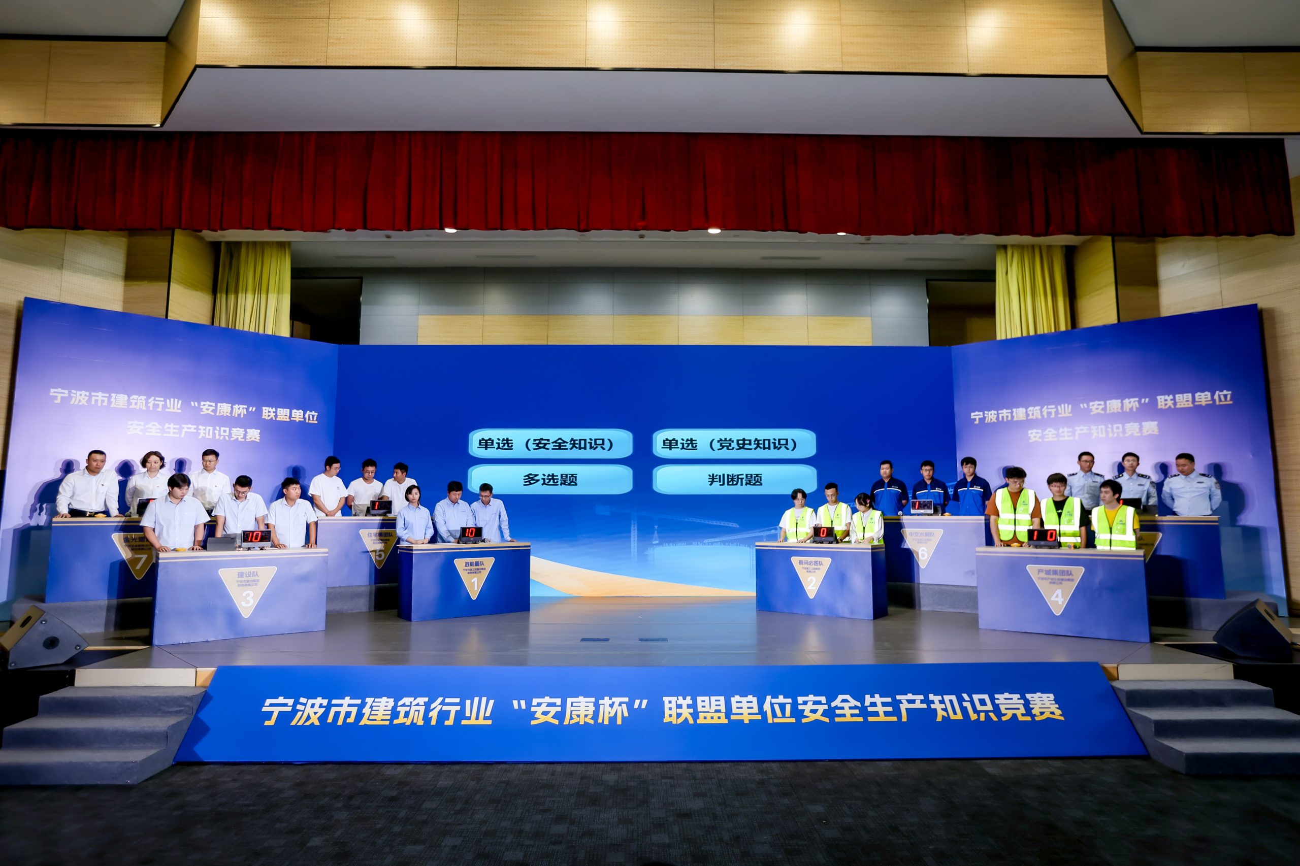 ? ? ? ?參與此次競賽的8支代表隊(duì)由市建筑行業(yè)“安康杯”聯(lián)盟單位組成,比賽圍繞安全相關(guān)法規(guī)標(biāo)準(zhǔn)、安全生產(chǎn)應(yīng)知應(yīng)會(huì)、應(yīng)急處置、黨史知識(shí)等多個(gè)方面,設(shè)置有必答題、搶答題、挑戰(zhàn)題三類題型,題目靈活,重點(diǎn)突出,全方位考察選手們的安全生產(chǎn)理論水平。