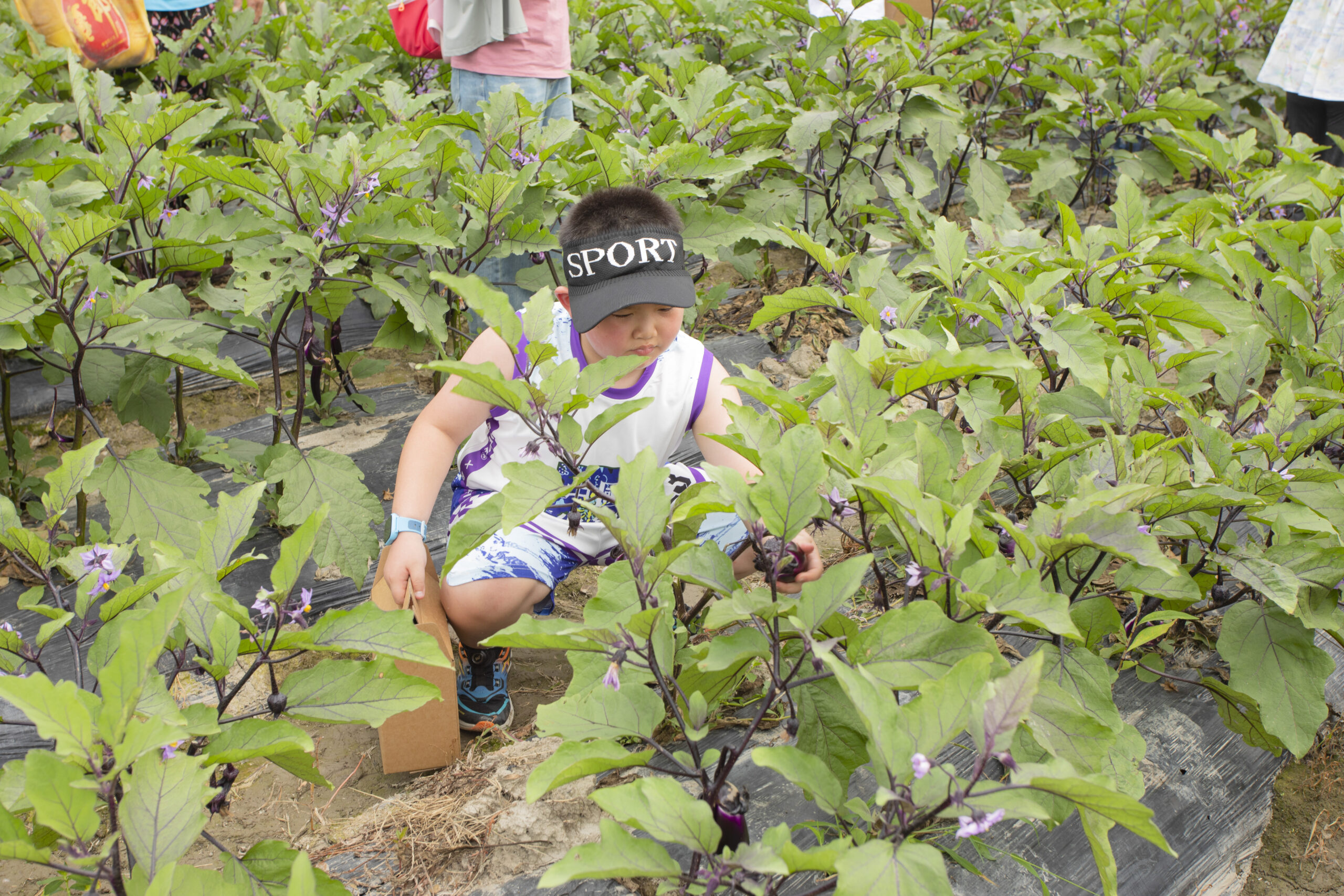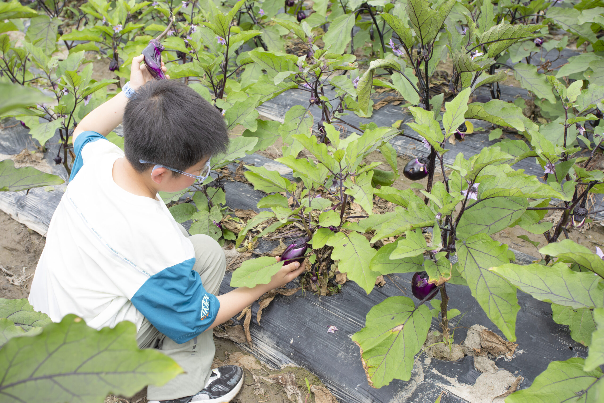 ? ? ? 在茄子棚中,他們小心翼翼地避開(kāi)茄子藤上的倒刺,仔細(xì)地將一根根飽滿的茄子裝入籃中,孩子們都是滿載而歸。大家不僅收獲了勞動(dòng)成果,也體驗(yàn)到了田間勞作的艱辛和種植過(guò)程的不易。