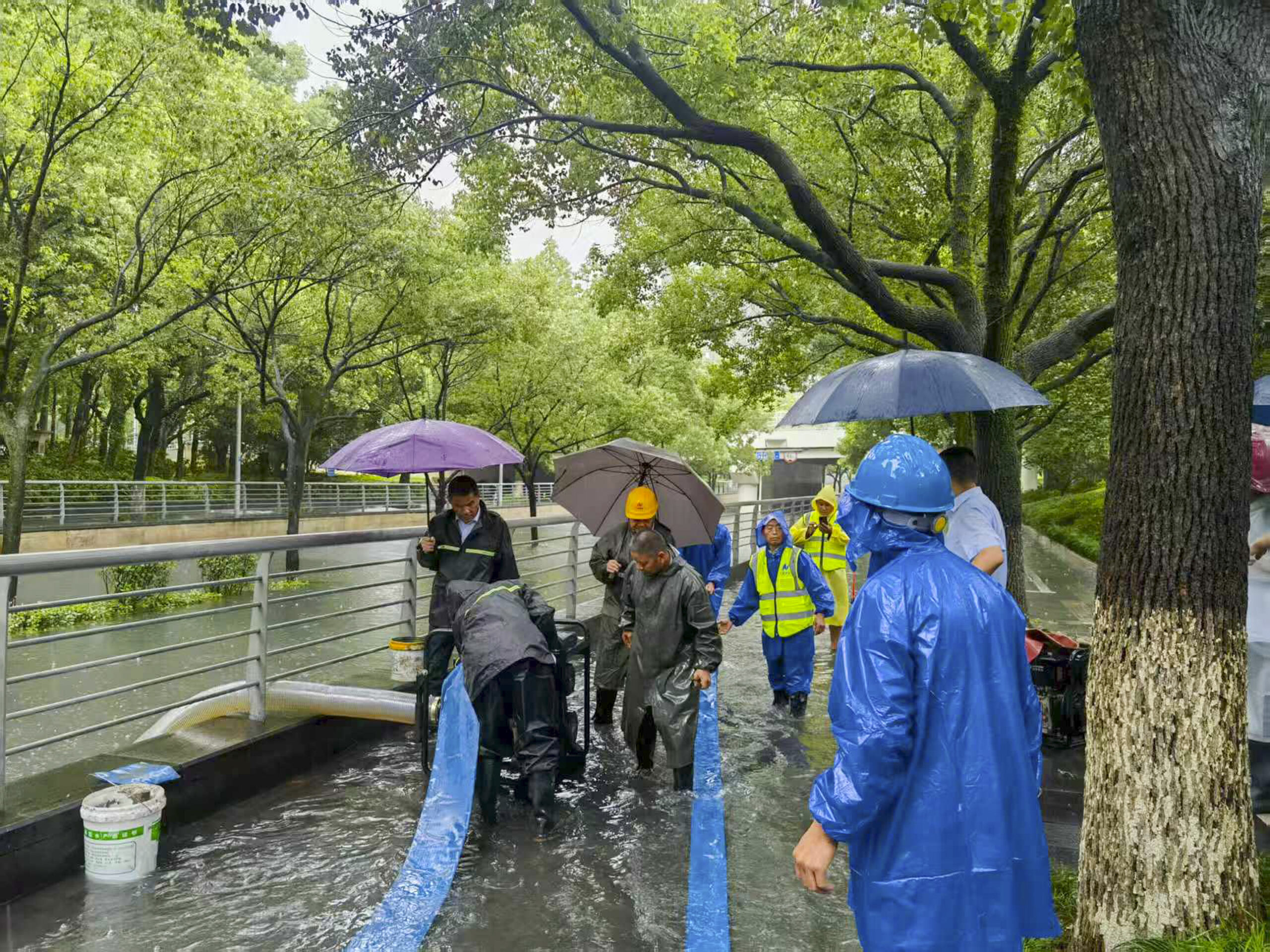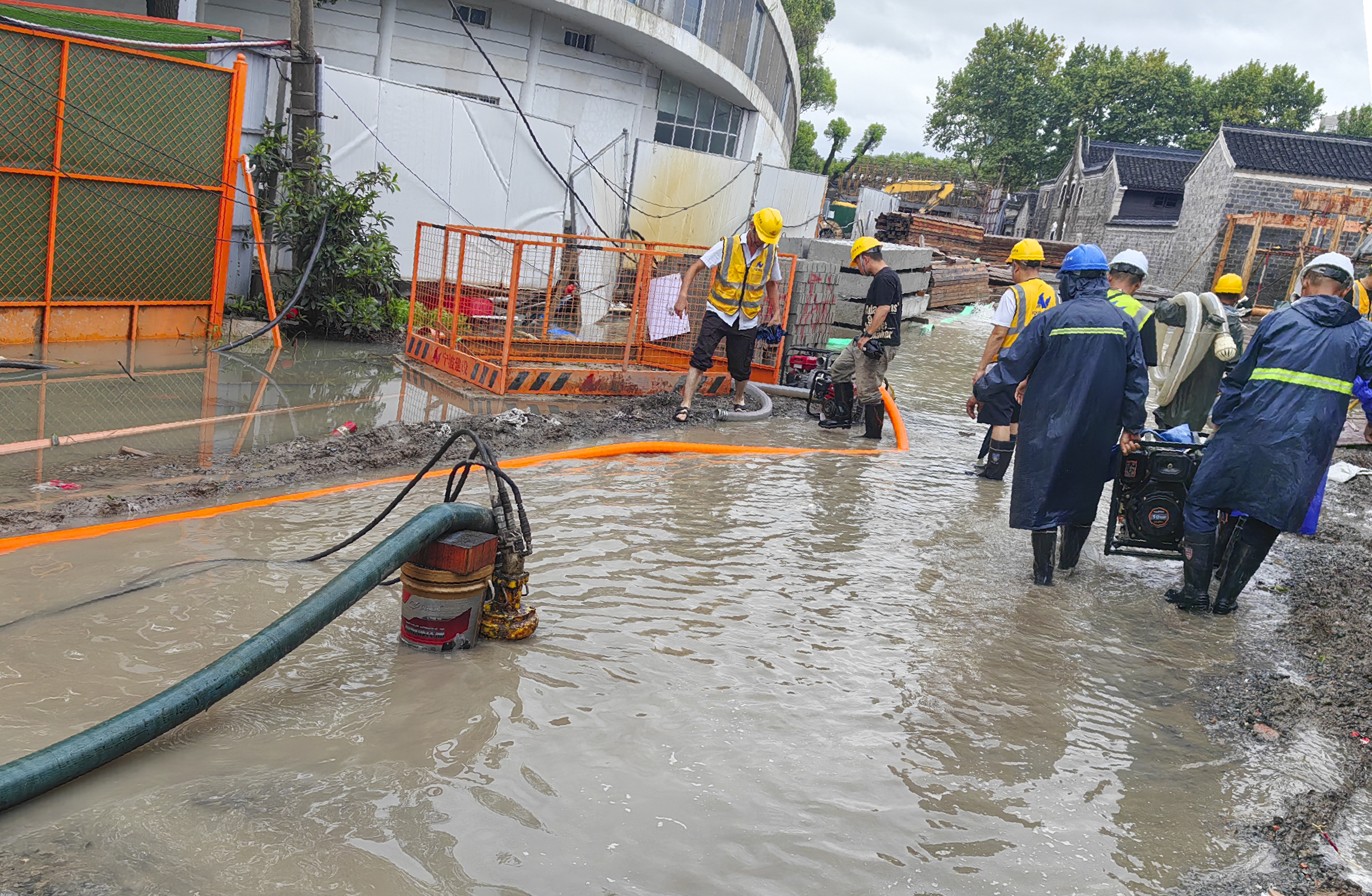 ? ? ? ?受今年8號臺風(fēng)竹節(jié)草影響,寧波城市部分路段積水嚴(yán)重,早上8點左右,寧波建設(shè)集團應(yīng)急救援隊組織20余名搶險隊員,攜帶3臺排水泵赴琴橋下橋洞處進行強排作業(yè),此時橋洞積水已經(jīng)近2米深,有多部行經(jīng)車輛涉水被淹,搶險隊員立刻組織排水工作,經(jīng)過近6個小時的作業(yè),截止下午2點,橋洞積水已基本排干。隨后,救援隊又馬不停蹄前往秀水街改造項目進行排水。