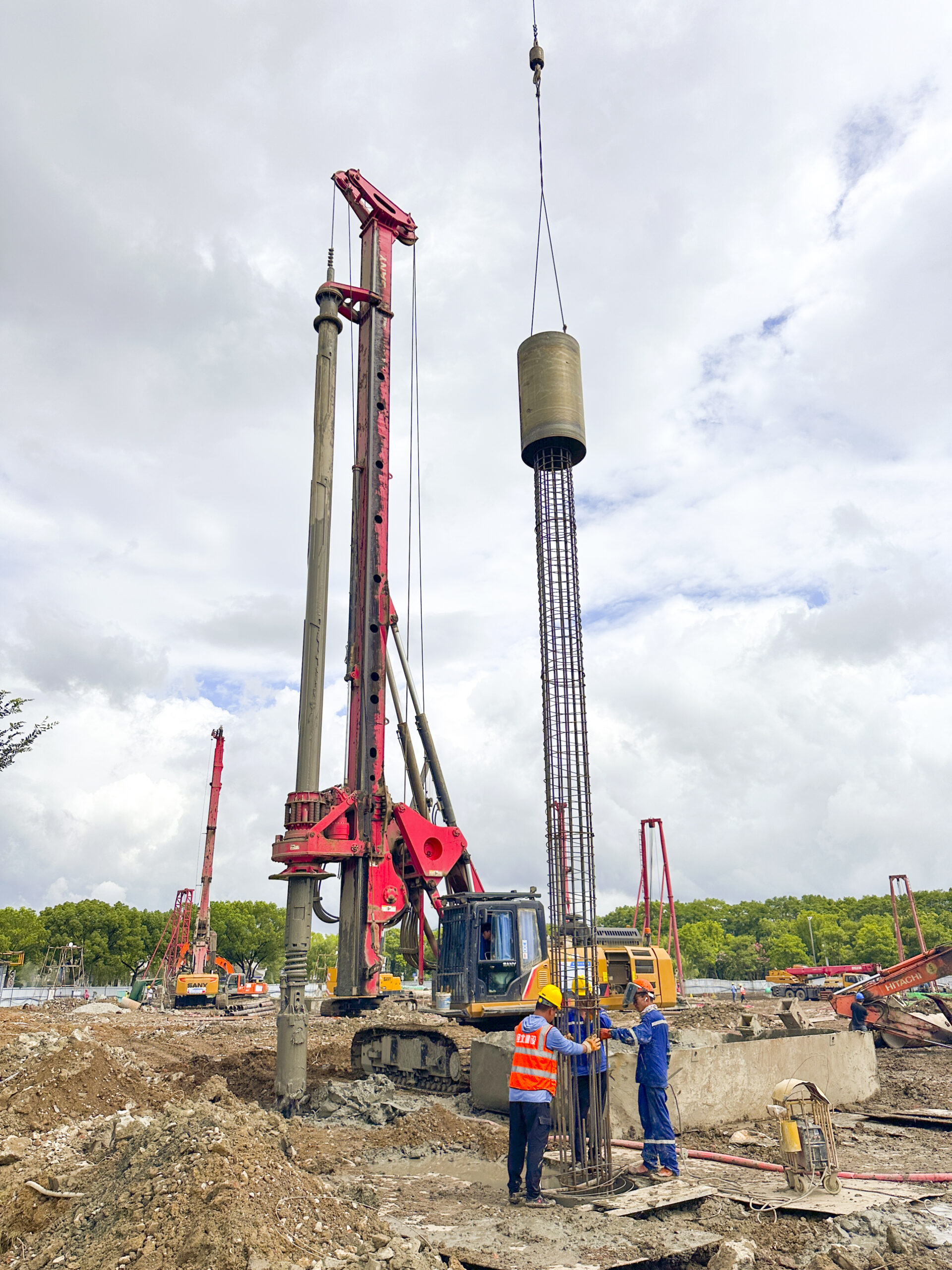 ? ? ? 為確保項(xiàng)目?jī)?yōu)質(zhì)高效推進(jìn),機(jī)施分公司組建了由資深技術(shù)骨干領(lǐng)銜的專業(yè)項(xiàng)目管理團(tuán)隊(duì),并制定科學(xué)合理的施工方案。施工過(guò)程中采用先進(jìn)的旋挖機(jī)施工技術(shù),該設(shè)備作為多功能、高效率的灌注樁成孔裝備,兼具桅桿垂直自動(dòng)調(diào)節(jié)與鉆孔深度精準(zhǔn)計(jì)量功能,通過(guò)鉆斗旋轉(zhuǎn)鉆進(jìn)、提升卸渣的循環(huán)作業(yè)模式,有效保障施工效率與工程質(zhì)量。針對(duì)巖石層施工難點(diǎn),分公司運(yùn)用成熟的加壓鉆進(jìn)工藝,依托設(shè)備的高扭矩性能驅(qū)動(dòng)鉆頭合金齒切入巖層實(shí)施破碎,此項(xiàng)技術(shù)方案集中呈現(xiàn)了分公司在復(fù)雜地質(zhì)條件下積累的施工經(jīng)驗(yàn)。